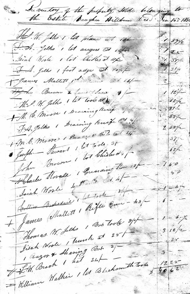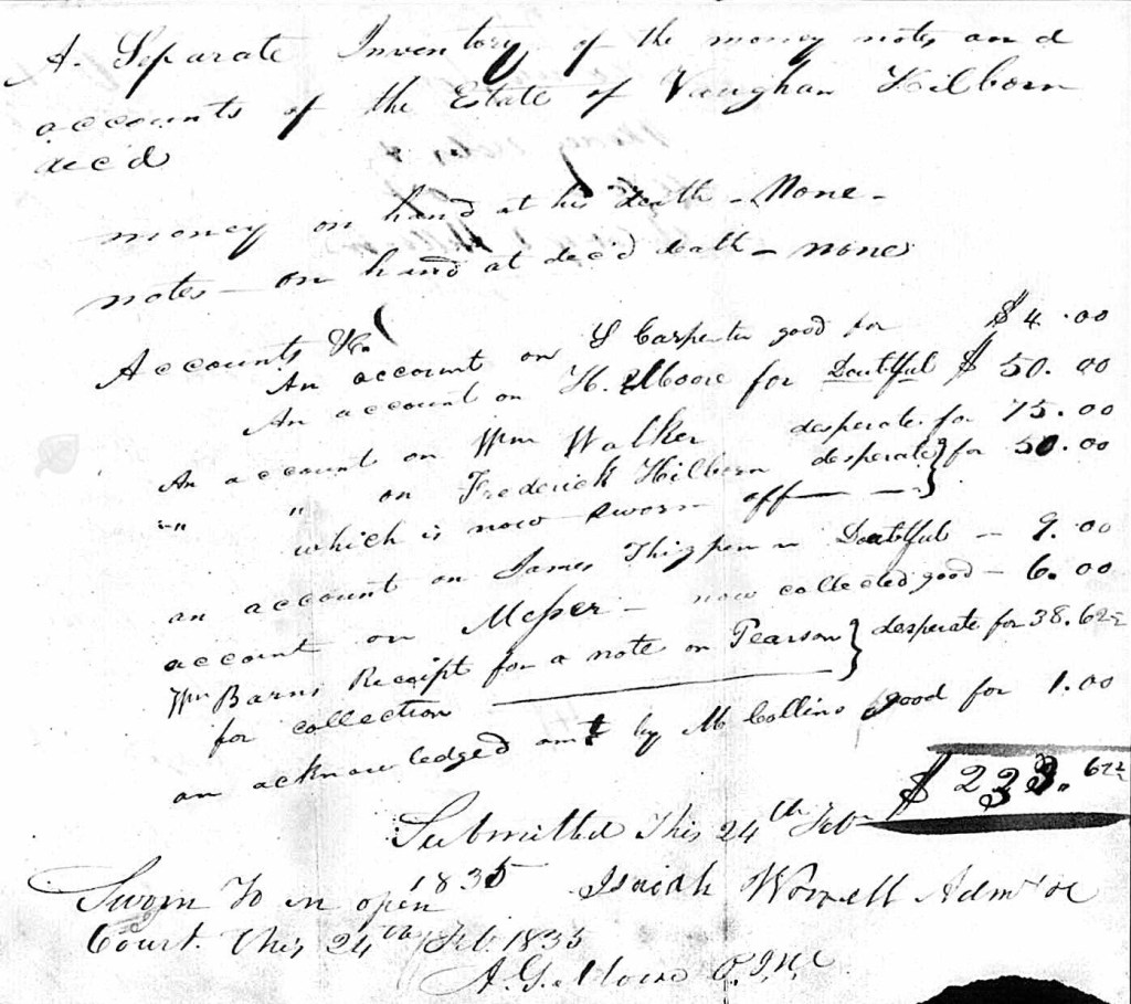 1836 Dec 16. Inventory of Property Sold of Vaughan Hilburn estate.