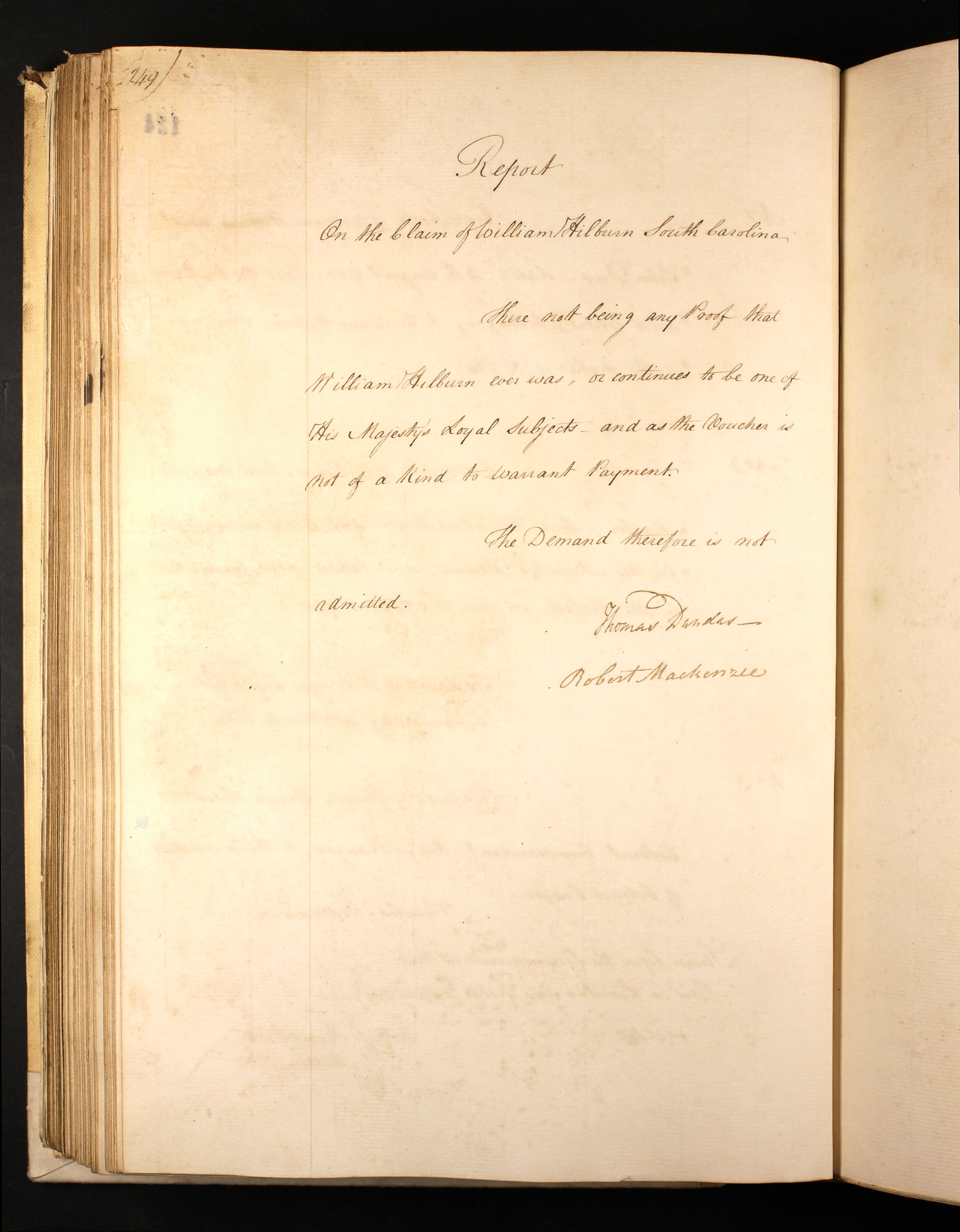 Loyalist Claims of William Hilburn, Sr. & William Hilburn Jr. of South Carolina