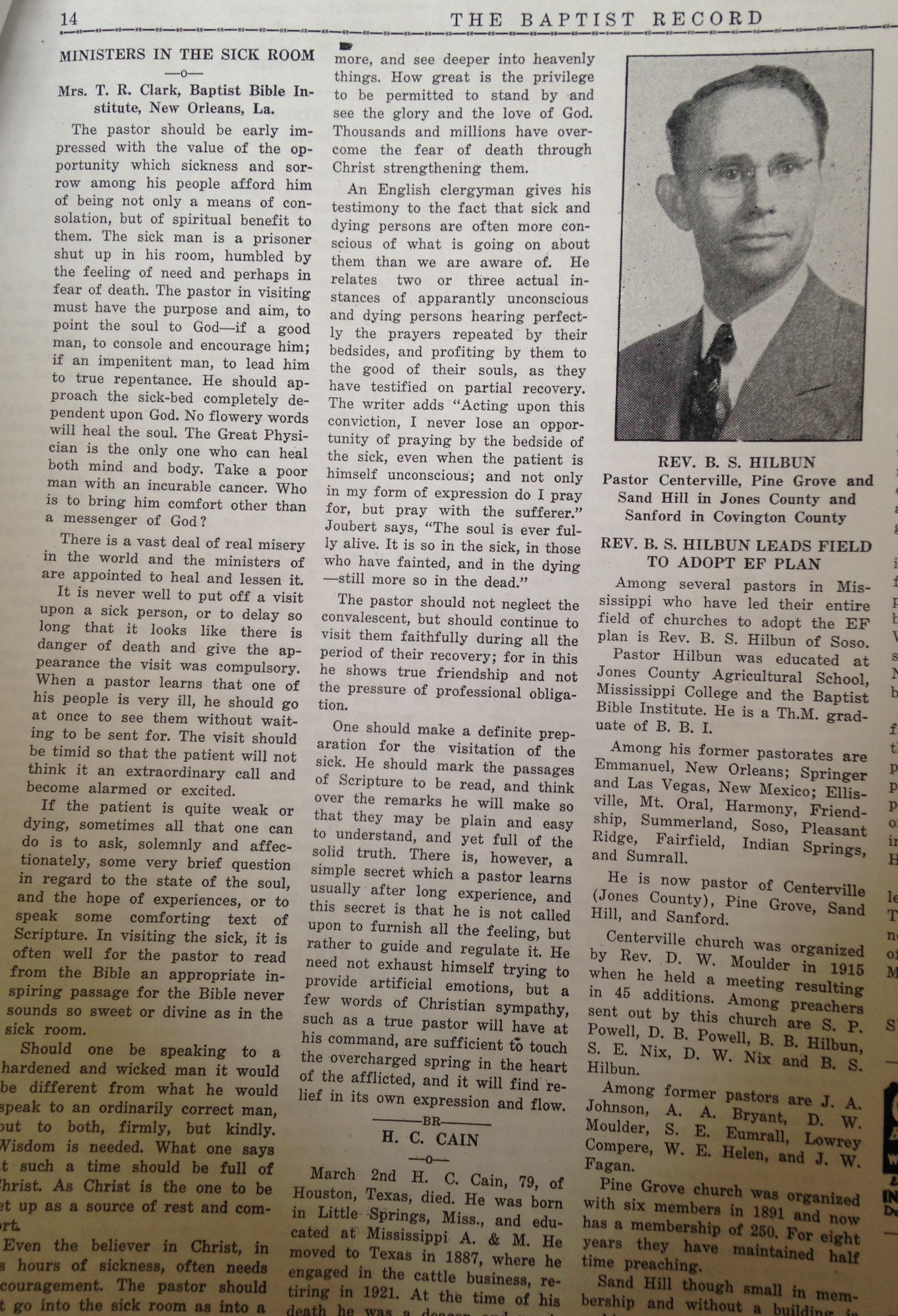 Bruce S. Hilbun from The Baptist Record, May 1940